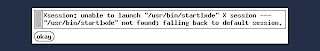 X-session unable to launch "/usr/bin/start/xde" X-session not found "/usr/bin/start/xde" falling back to default session.on re-start. A little x-session voodoo?